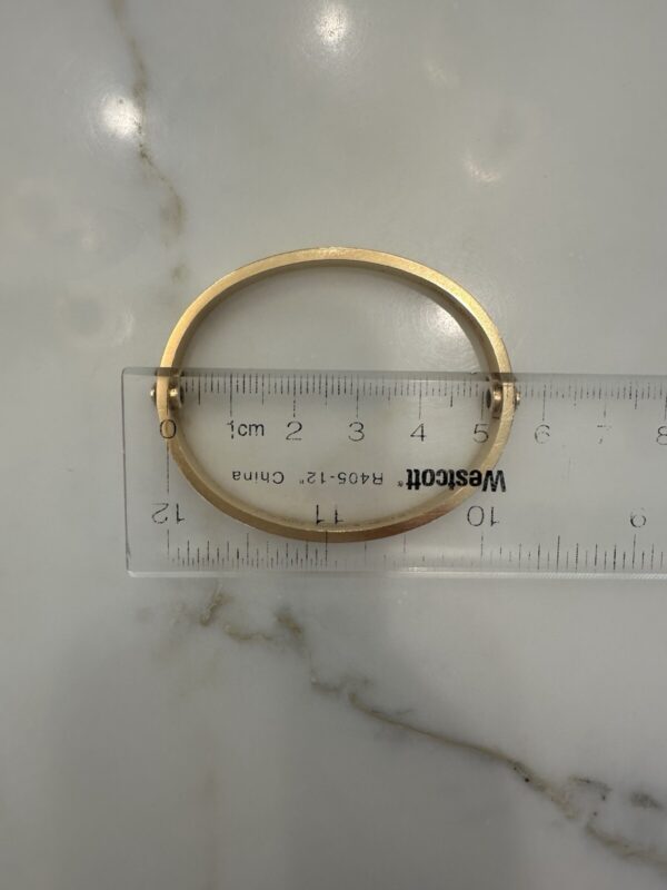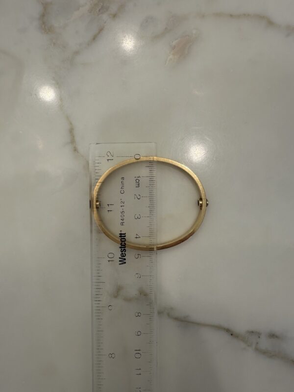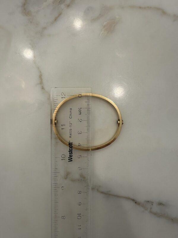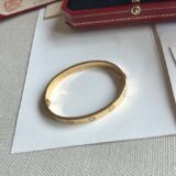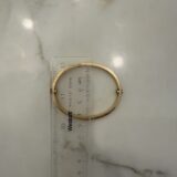 Son motif serti de visuels, nécessitant le tournevis fourni à l’origine pour l’ouvrir, évoque les liens d’un amour éternel. Conçu pour être porté en permanence, il se patine avec le temps pour acquérir un caractère unique.