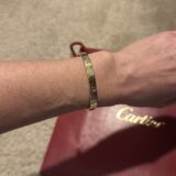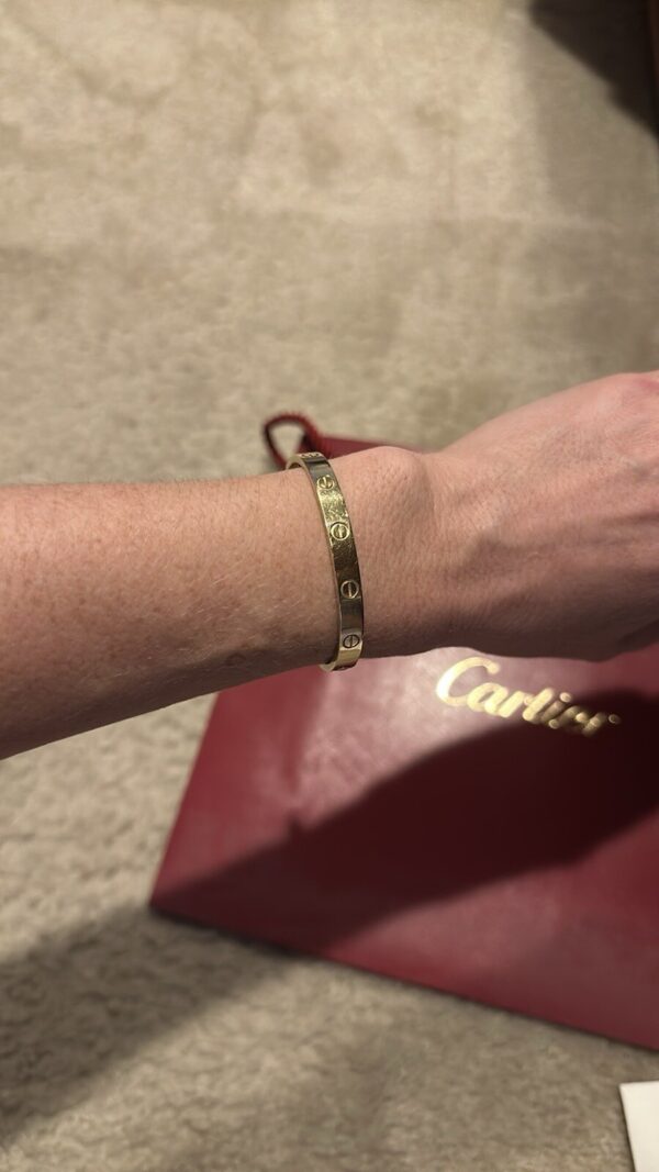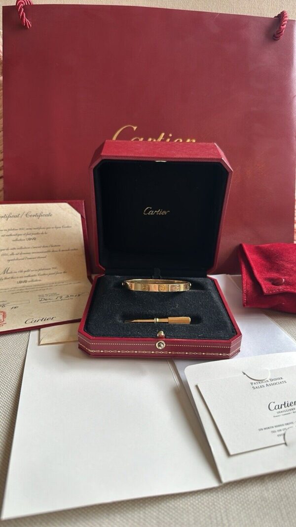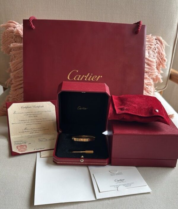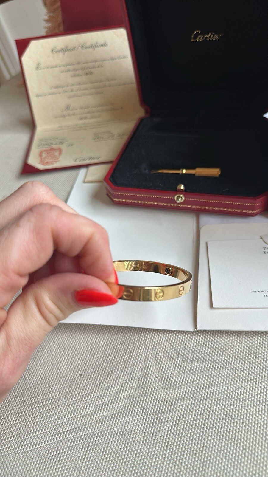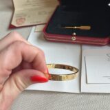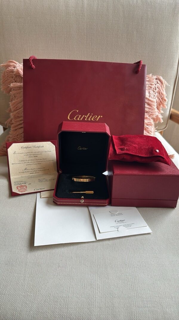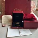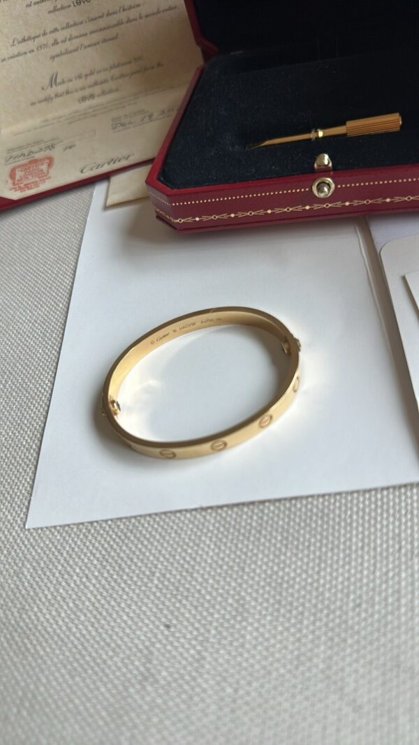 Icône intemporelle de la joaillerie, le bracelet Love de Cartier séduit par son design audacieux et son symbolisme romantique. Ce modèle en or jaune 18 carats, taille 16, incarne l’élégance discrète et la sophistication de la maison française.