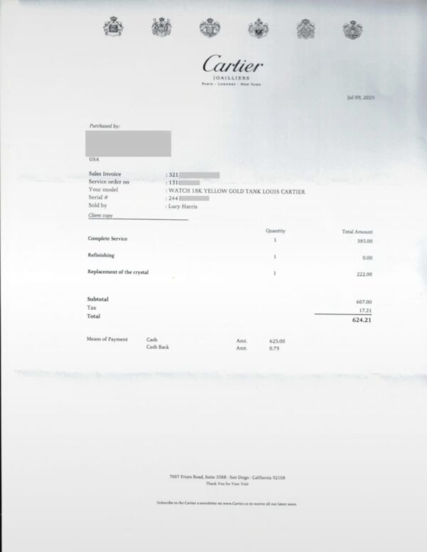État:2025 RECU DE SERVICE + BOÎTE ET PAPIER CARTIER D’ORIGINE. MAGNIFIQUE MONTRE!